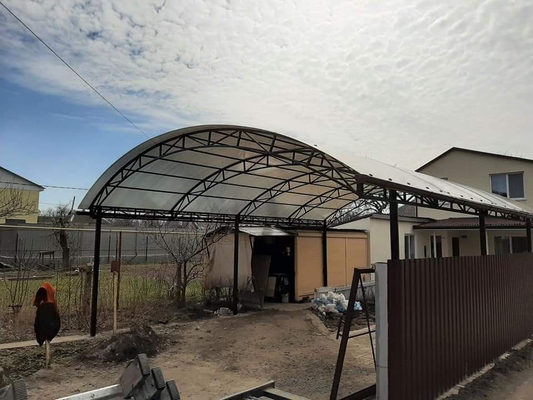 Навес из металлопрофиля с поликарбонатом арочный для машин за воротами