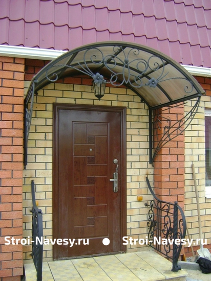 Арочный козырек-навес из поликарбоната с коваными узорами