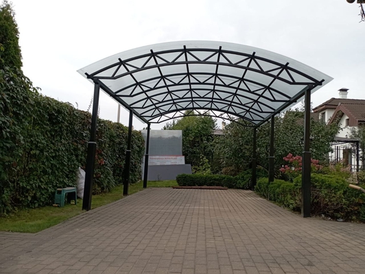 Арочный навес с поликарбонатом пристрой над крыльцом